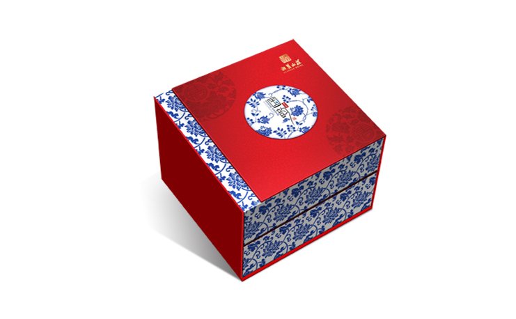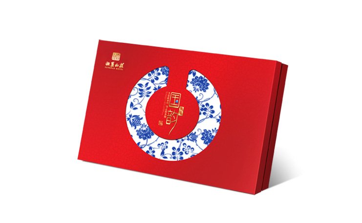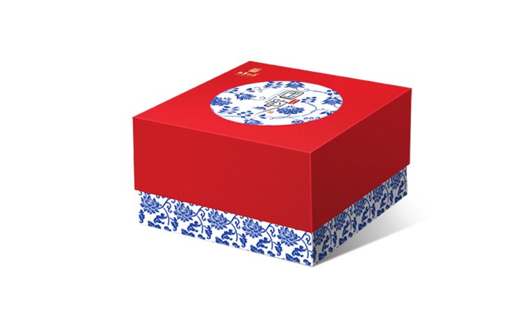 國(guó)韻包裝禮盒,采用國(guó)韻二字,以中國(guó)紅為主色,配以青花圖案為輔助,看起來富貴高雅,是送禮之上品。
