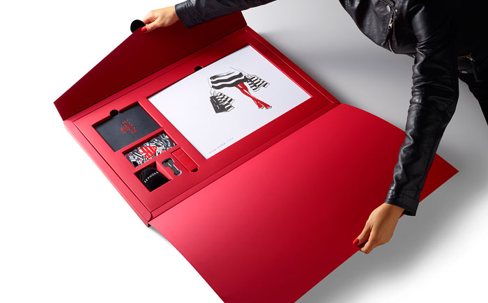 在前面的每一個圓滑,黑色,16“x24”信封,是收件人的姓名寫在紅色的書法。內(nèi)部是大量柔軟的胭脂紅,每按試劑盒項目很好地存放在自定義威爾斯。包括一個VIB胭脂歡迎包,一個全尺寸的咬唇膏在自定義胭脂紅色燈罩,絲芙蘭品牌iPhone案件和耳機(jī),和限量版編號的版畫藝術(shù)家路維薩·布菲特簽署。新聞稿本身被加載到一個光滑的黑色USB驅(qū)動器在一個關(guān)鍵的形狀。從絲芙蘭個人歡迎信放在上面。”