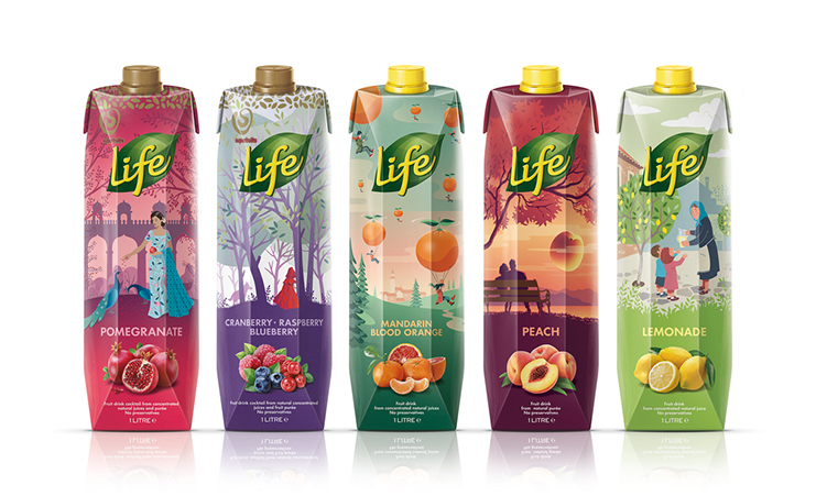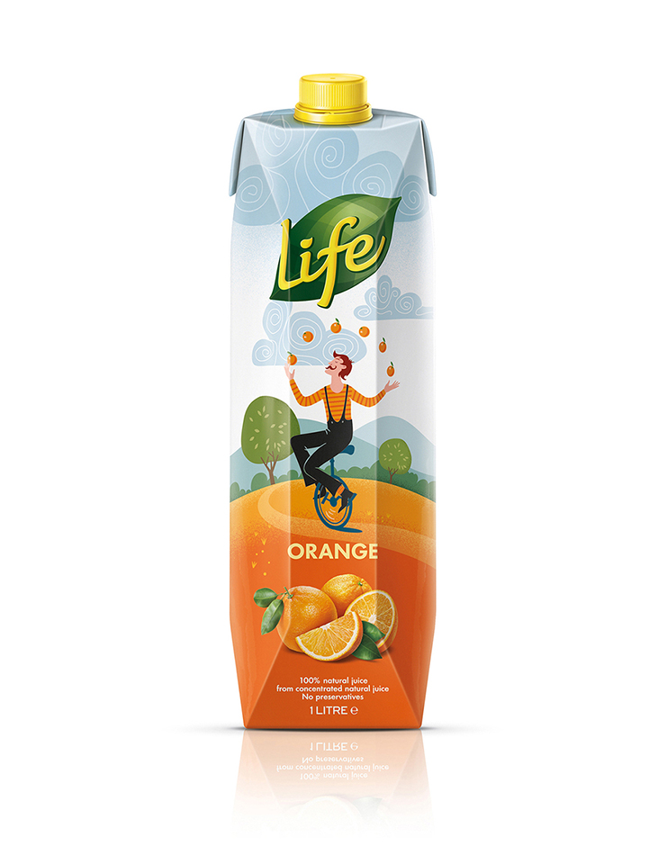 水果汁的生活范圍兩年前就進入了市場,從第一天開始就一直在商店貨架上雕刻出一個。他們的包裝設(shè)計遵循顯示超大水果照片預(yù)計公式,爆開的多汁性和活力。不幸的是,這一藝術(shù)方向與競爭對手的海上混合在一起。只有兩年的時間,生活的果汁作出了大膽的決定,重新設(shè)計他們的整個包裝線。的主要目標(biāo)是一個強大的貨架的存在,將捕捉消費者的眼睛。